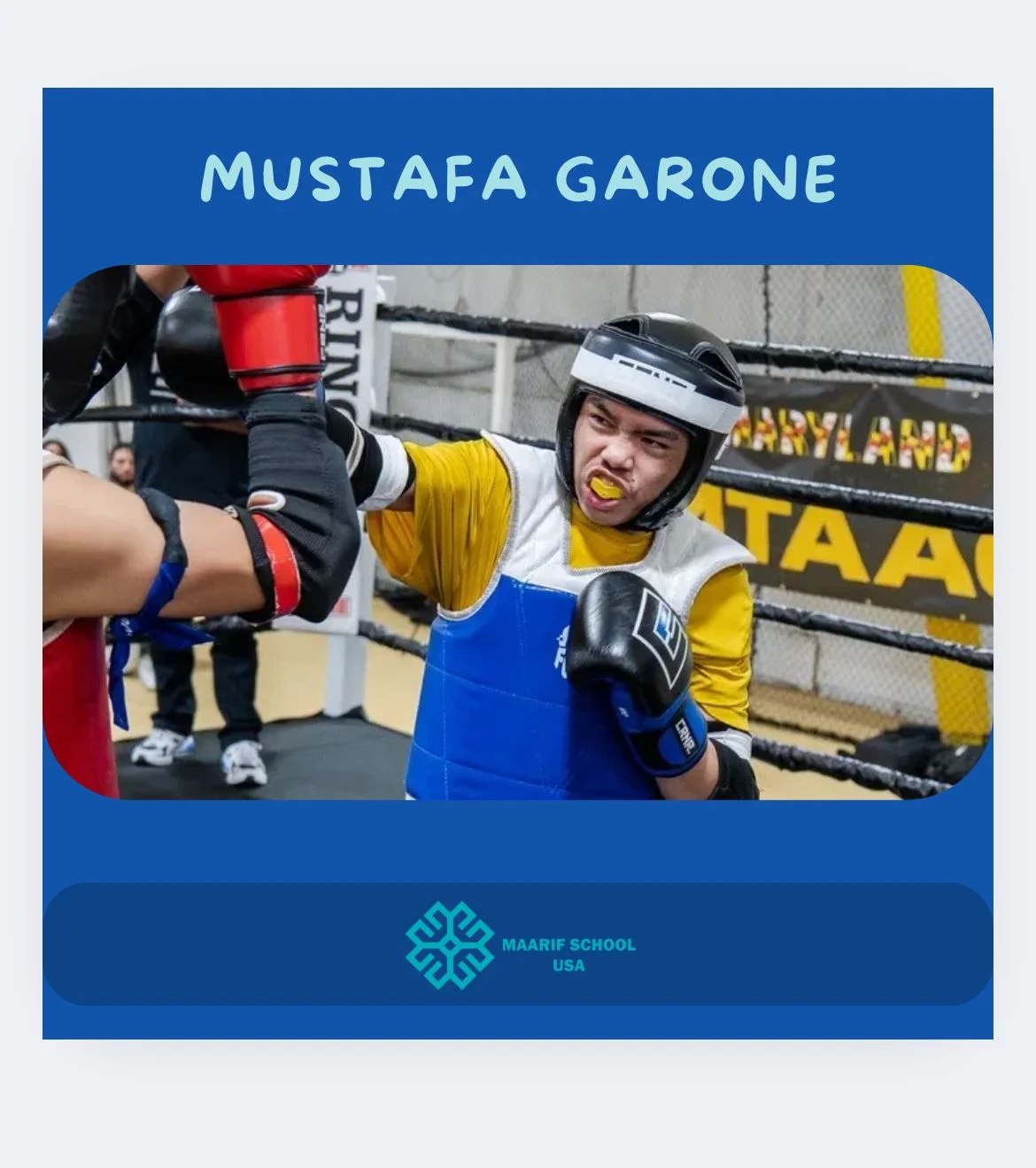 Maarif School USA is proud to announce that our student, Mustafa Garone, has been awarded the bronze medal in Muay Thai at the ISKA World Kickboxing Championship held in Australia. Congratulations, Mustafa, on this remarkable achievement. Your dedication and hard work continue to inspire us all!